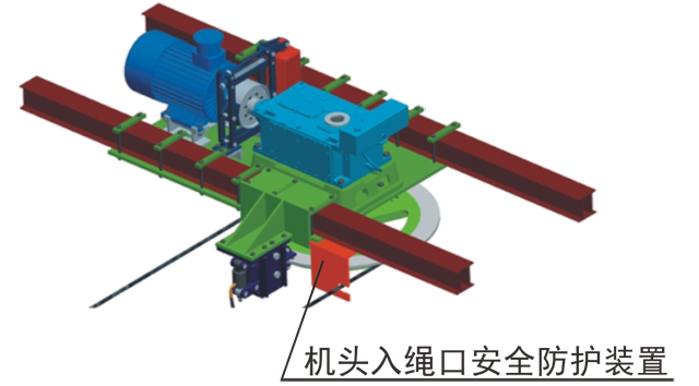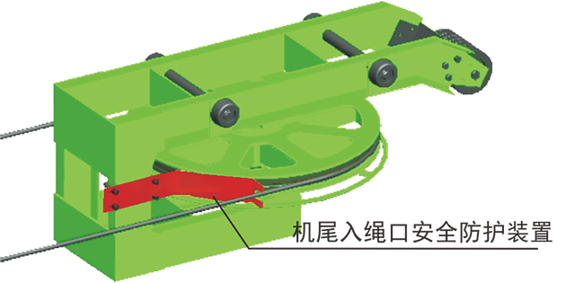 在驅(qū)動(dòng)輪、迂回輪與鋼絲繩入口處,安裝了安全防護(hù)裝置,防止設(shè)備運(yùn)行中有異物導(dǎo)入輪體而造成掉繩或人身傷害事故的發(fā)生。