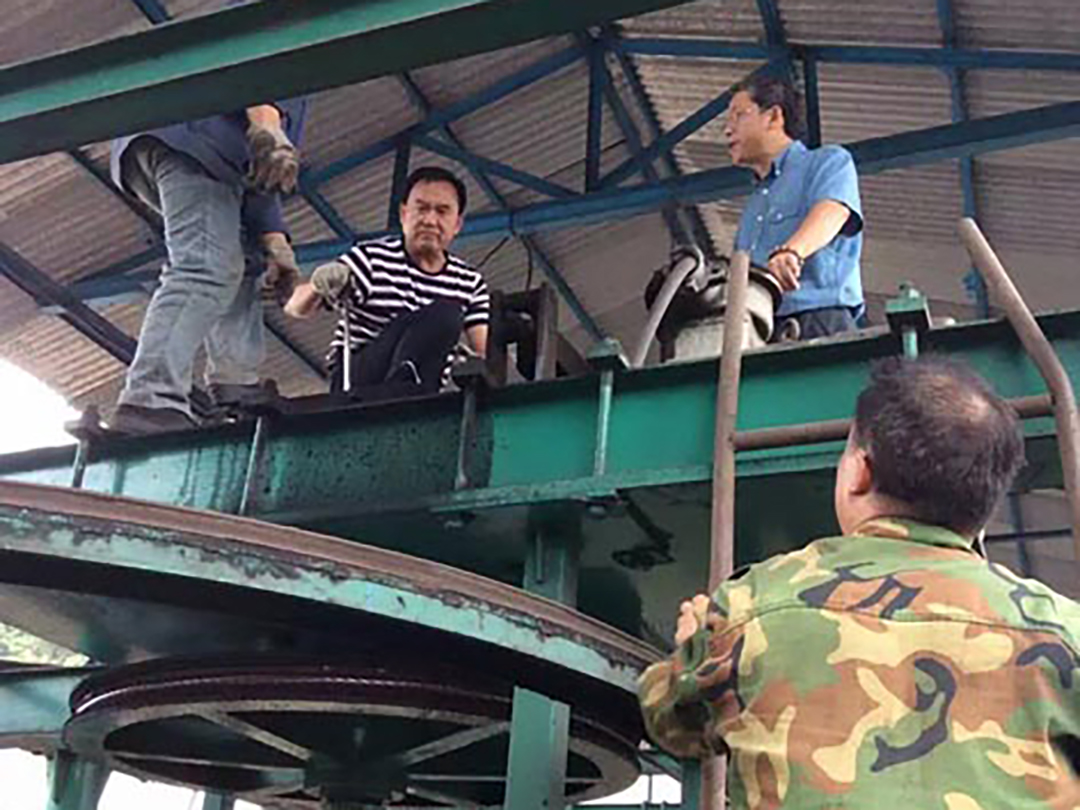 展會(huì)第二天,公司董事長(zhǎng)肖公平拜訪了2011年采購(gòu)我公司產(chǎn)品的印尼客戶(hù)并對(duì)該礦的設(shè)備使用情況進(jìn)行了了解和檢查,和該礦領(lǐng)導(dǎo)洽談了設(shè)備改造,新設(shè)備及配件的采購(gòu)方案。
