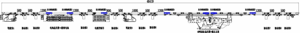 方式二:起吊梁位于最前端位置,適用于直接將液壓支架運(yùn)輸?shù)焦ぷ髅媲醒畚恢眠\(yùn)輸方式,采用葫蘆驅(qū)動(dòng)形式起吊梁,也可拆解為小噸位起吊梁,用于運(yùn)輸平板車、礦車等小型貨物。