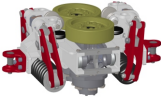 擺臂式半馬達驅(qū)動裝置由液壓半馬達 、行走輪 、摩擦輪 、制動裝置 、 左右擺臂 、 夾緊油缸等組成; 其采用擺臂支架結(jié)構(gòu) ,通過 中 間短軸連接摩擦輪 ,額定牽 引 力30KN ,設有工作制動器和安全制動器 ,制動力都為45kN