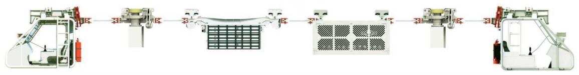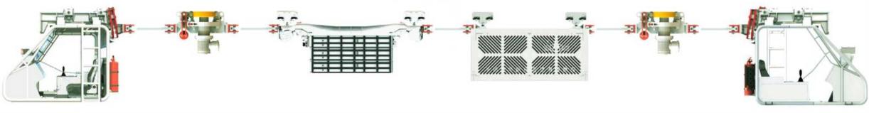 可擴展性高,最大可達到14驅;采用永磁一體機,單驅動部的牽引力可達28KN,總驅動力最大可達392KN;電池利用率高,利用率高達90%;驅動部可獨立控制,智能甩驅,節(jié)能降耗;最大爬坡能力達25°。