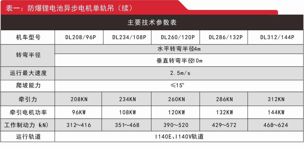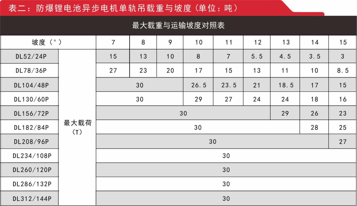 2.防爆鋰電池異步電機單軌吊參數(shù)及負載表