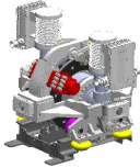 主要 由變頻調(diào)速一體機(jī) 、行星減速機(jī) 、工作制動(dòng)器(配備減速機(jī)內(nèi)置濕式制動(dòng)器及作用在驅(qū)動(dòng)輪 的盤(pán)式制動(dòng)器)、驅(qū)動(dòng)輪 、編碼器測(cè)速裝置 、離心限速裝置 、驅(qū)動(dòng)支架 、車輪擺架 、卡軌輪 、導(dǎo)向輪等組成 , 單個(gè)驅(qū) 動(dòng) 單 元 的驅(qū) 動(dòng) 力 :22 kW變頻 調(diào)速 一體機(jī) 的牽 引力 為60kN,45kW變頻調(diào)速一體機(jī)的牽 引力為135kN。