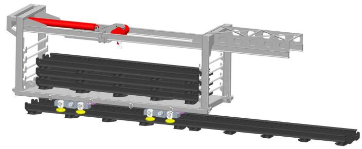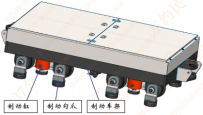 在每個(gè)驅(qū)動(dòng)部卡軌裝置設(shè)計(jì)對(duì)軌道制動(dòng)裝置 ,用于機(jī)車上坡溜車和機(jī)車下坡飛車時(shí)的緊急制動(dòng) 。制動(dòng)力滿足牽引力1.5~2.0倍要求 ,對(duì)軌制動(dòng)器的制動(dòng)力直接作用在兩側(cè)軌道上,制動(dòng)停車安全可靠。