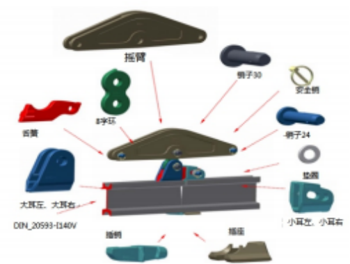 道岔應用于單軌吊軌道分道,其分為左開道岔、右開道岔、雙開道岔(對稱道岔)。