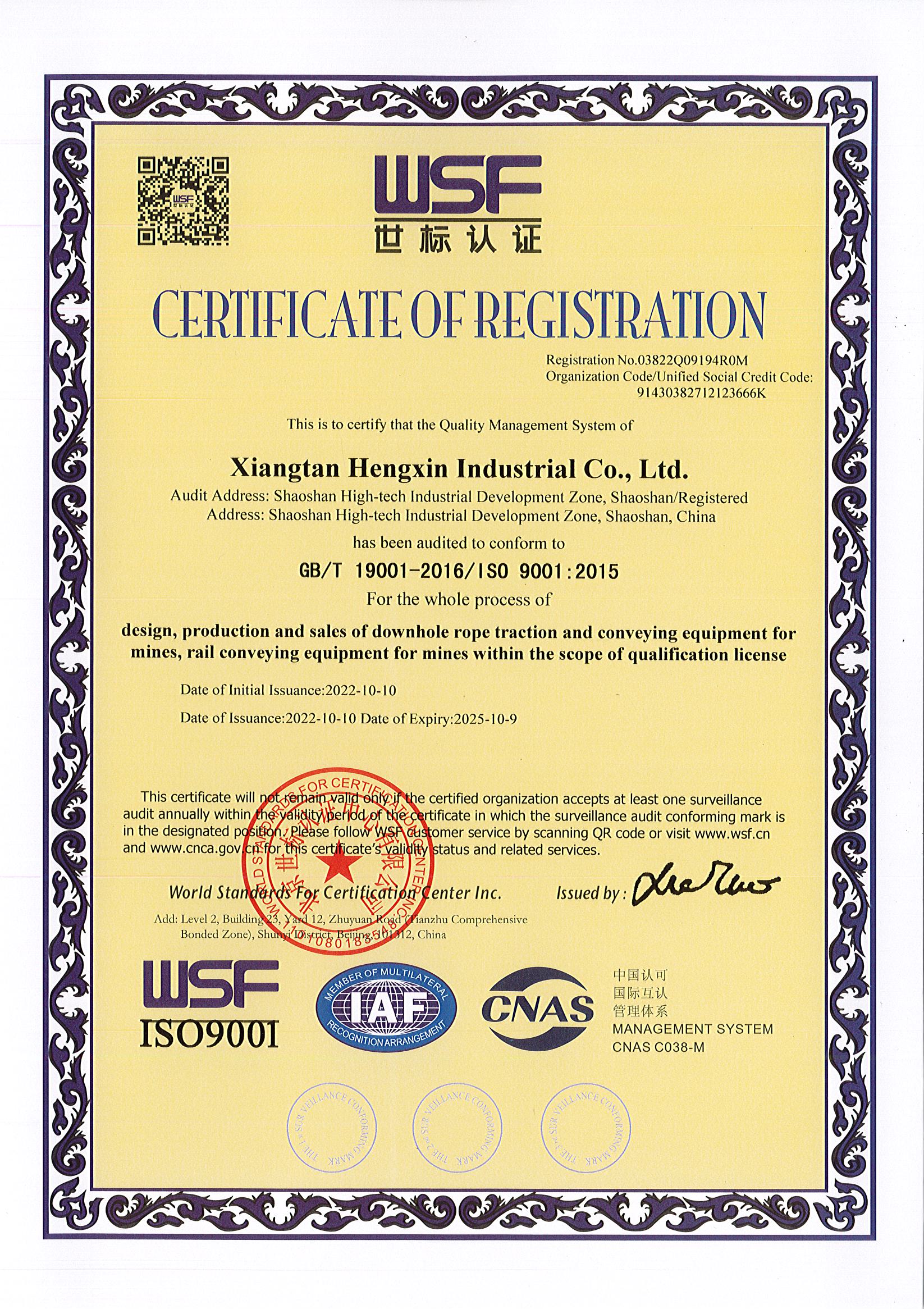 質量管理體系認證證書(中文/英文)