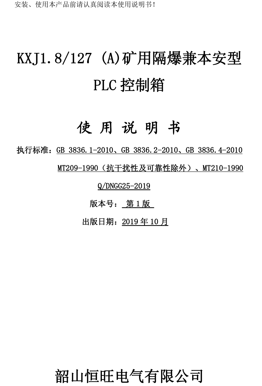 xiao12666@163.comKXJ1.8-127(A)礦用隔爆兼本安型PLC控制箱說明書