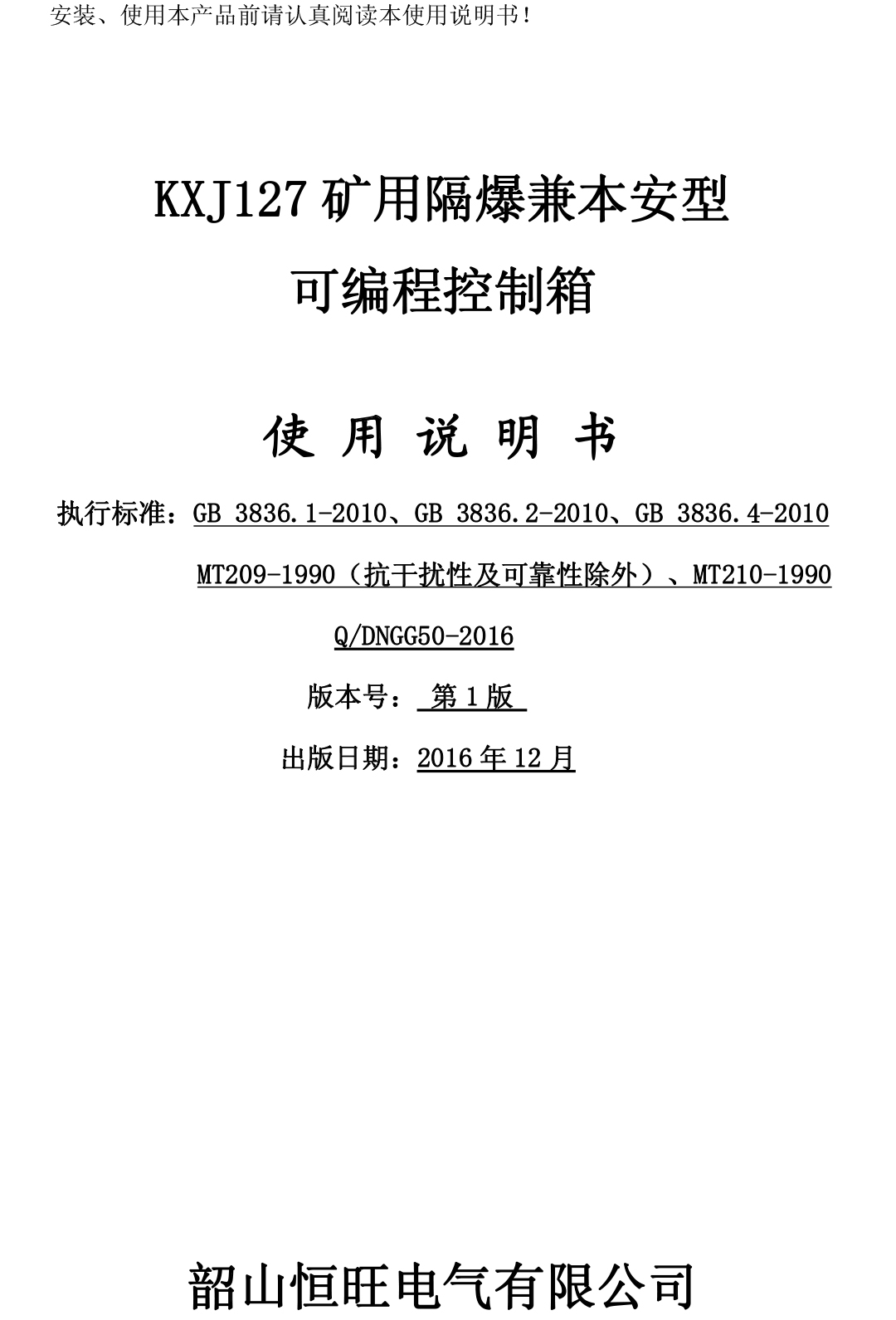KXJ127礦用隔爆兼本安型可編程控制箱說(shuō)明書(shū)