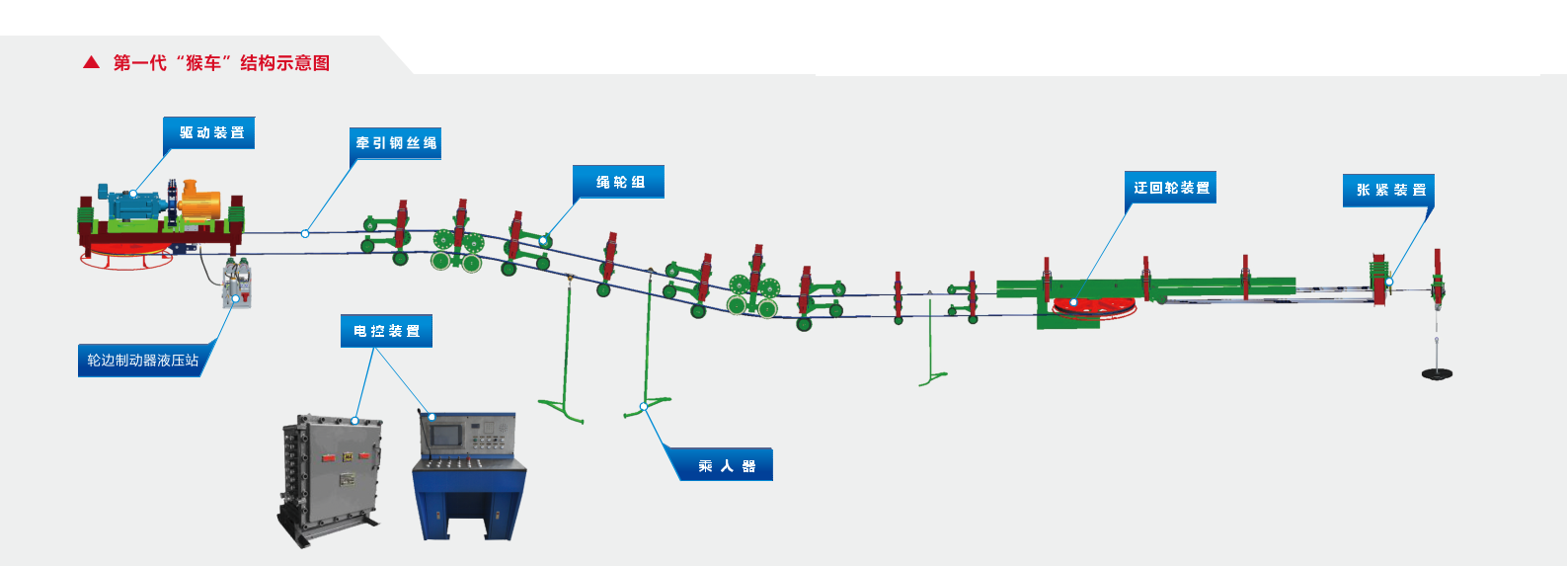 第一代“猴車”——機(jī)械驅(qū)動(dòng)式架空乘人裝置(俗稱“機(jī)械猴車”)