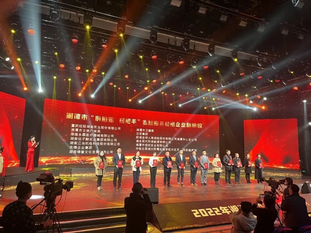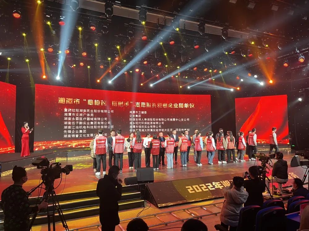 12月9日下午,由湘潭市文明委、市志工委主辦,市委宣傳部(市文明辦)、市志工辦承辦的2022年湘潭市“心相蓮·搭把手”志愿服務(wù)展示交流活動(dòng)在湘潭市廣播電視臺(tái)演播廳舉行。市委書記、市文明委主任劉志仁出席活動(dòng)并講話?!竞阈拦煞荨勘皇谟?湘潭市志愿服務(wù)愛心單位",公司總經(jīng)理肖薇受邀參加了此次活動(dòng)并代表公司接受表彰。