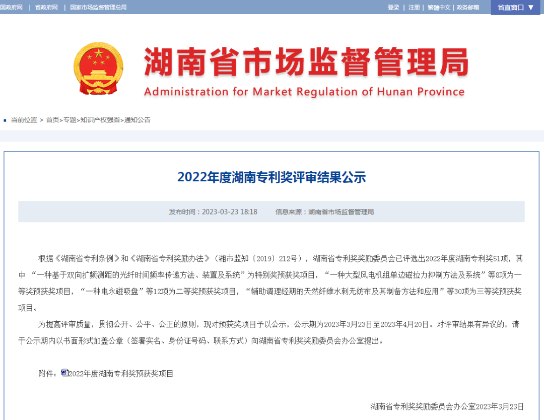 ▲2022年度湖南專利獎(jiǎng)評(píng)審結(jié)果公示