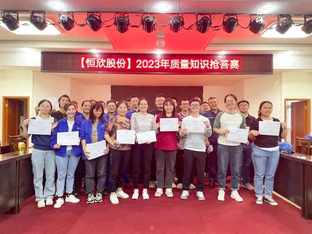 為活躍公司質量文化氛圍,增強全員質量意識,9月23日下午,【恒欣股份】舉辦了2023年度質量知識搶答賽活動,由質量總監(jiān)段杰圓主持。