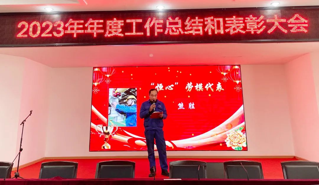 在表彰環(huán)節(jié),對2023年度的3個先進班組和57名優(yōu)秀員工、標(biāo)兵和勞模分別進行了表彰,感謝他們在過去一年中勤勉工作、拼搏進取,為公司實現(xiàn)銷售訂單、營業(yè)收入、公司凈利潤等經(jīng)營指標(biāo)的大幅增長,起到了表率作用和大的貢獻!同時,在表彰過程中,部分優(yōu)秀員工代表紛紛上臺感言,分享了各自敬業(yè)愛崗的工作情懷和職業(yè)操守,深深感恩【恒欣股份】給員工們打造的良好平臺,不僅給400多名員工的就業(yè)機會,而且讓全體員工的福利待遇年年增長!并表示將會繼續(xù)發(fā)揮先進表率作用,以更加飽滿的熱情投入到今后的工作中,為公司持續(xù)健康的高質(zhì)量發(fā)展作貢獻!