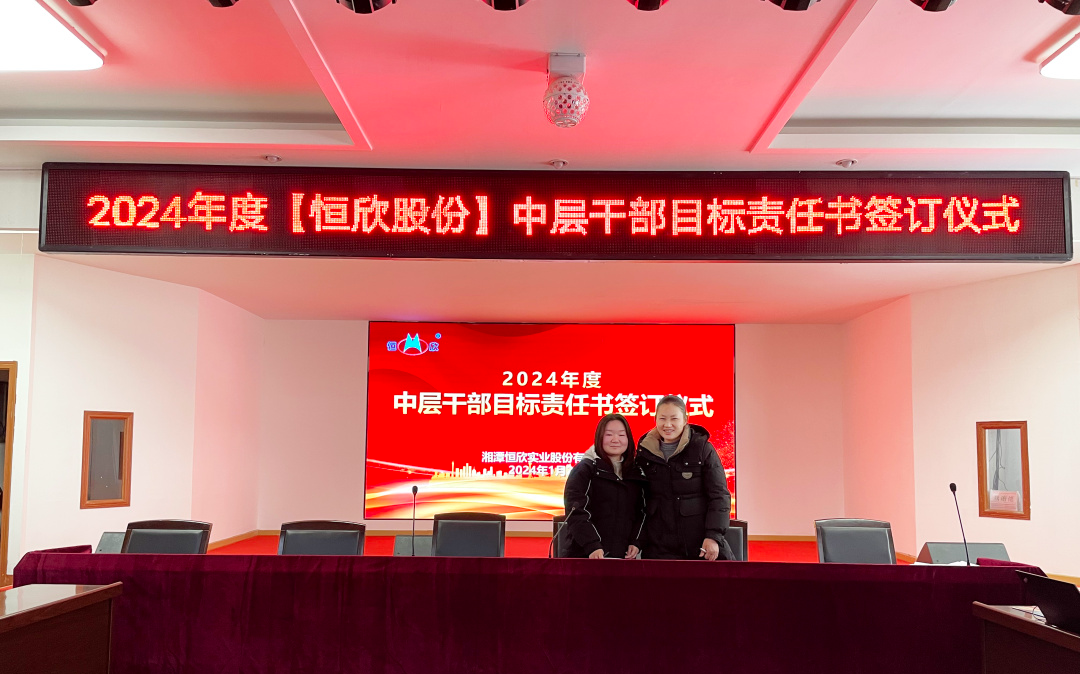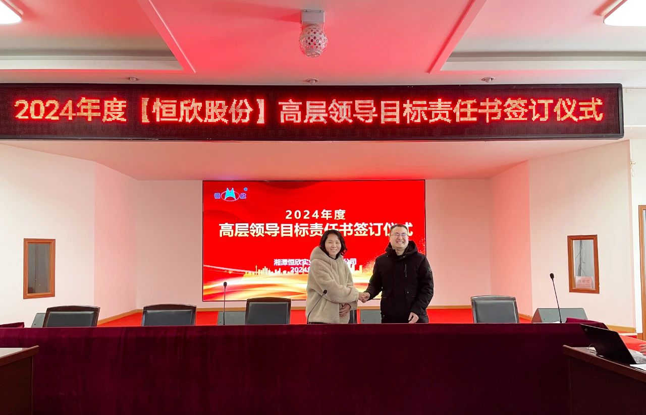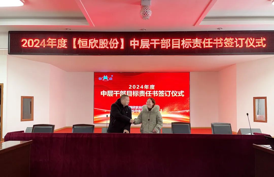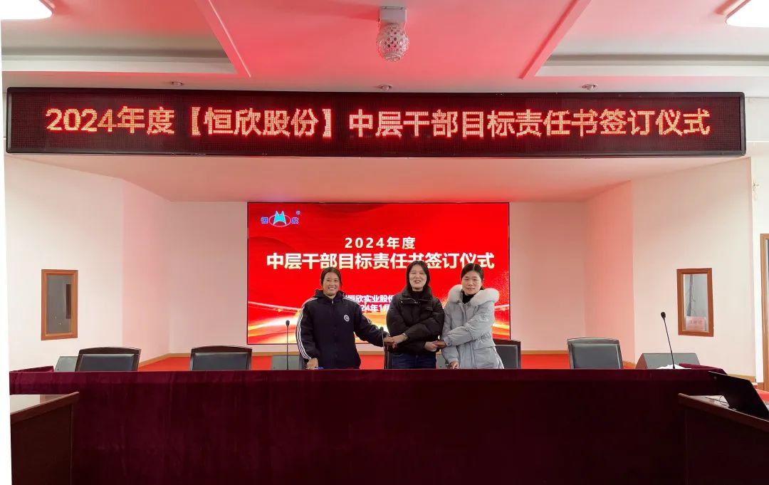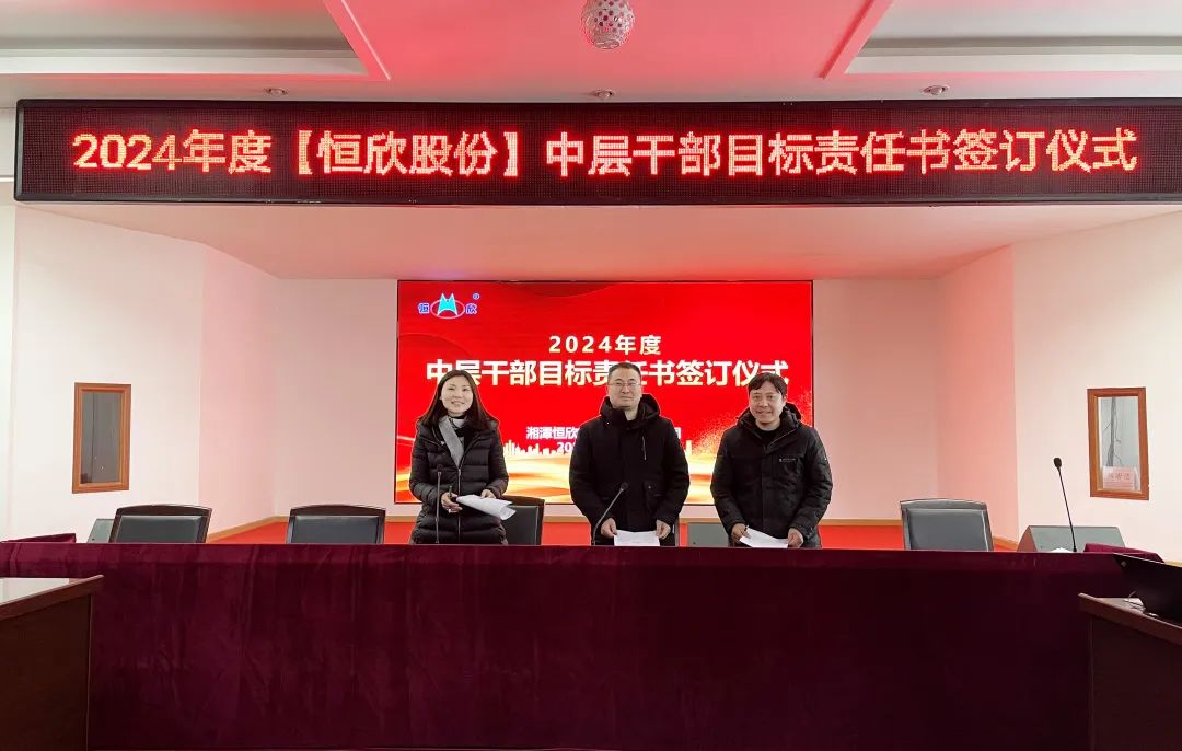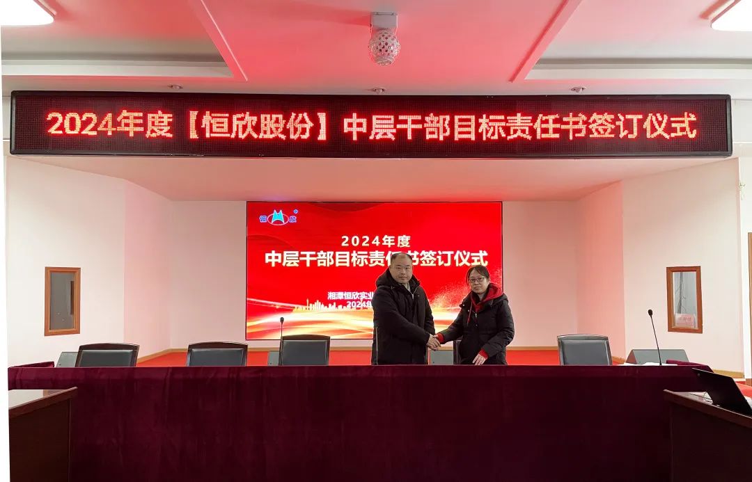 鳴鼓掛帥錨目標,滿弓勁發(fā)啟新程!1月24日下午,【恒欣股份】舉行2024年度目標責任書簽訂儀式。儀式由董事長肖公平主持,副董事長肖連平、總經(jīng)理肖龍武和全體高層領(lǐng)導、中層干部參加了簽訂儀式。