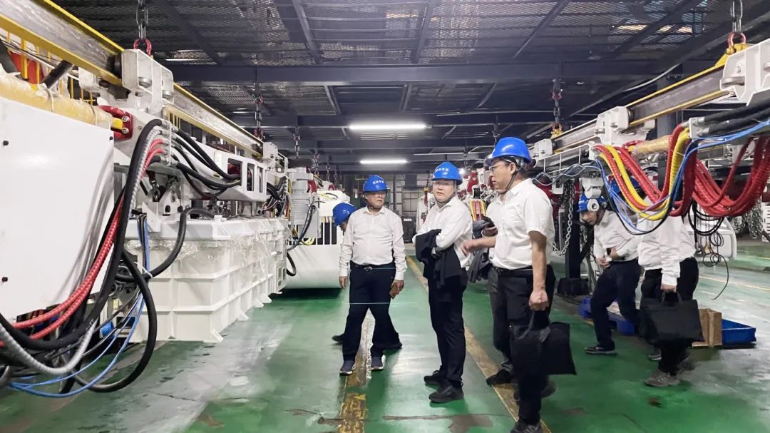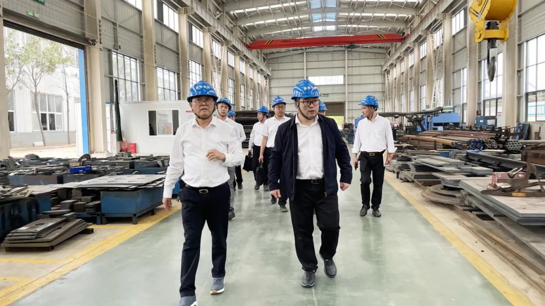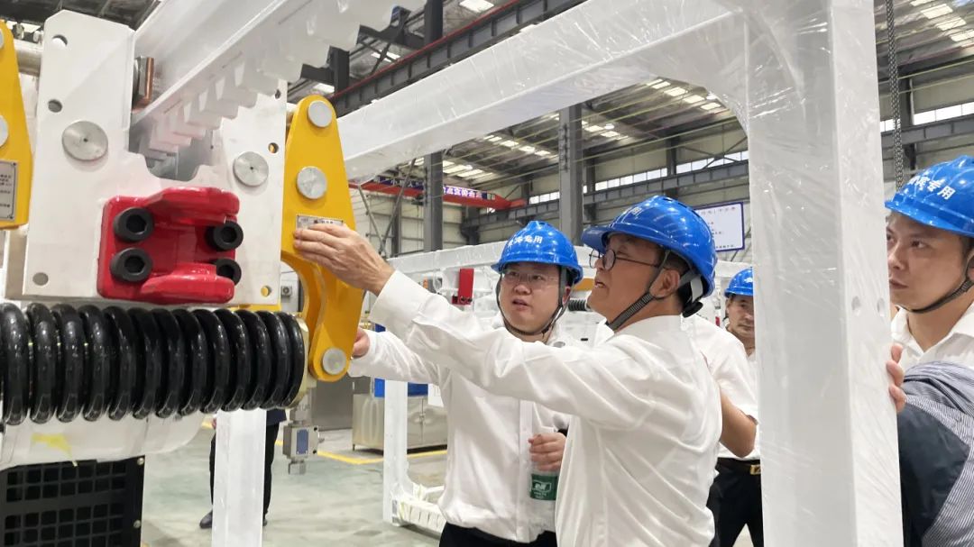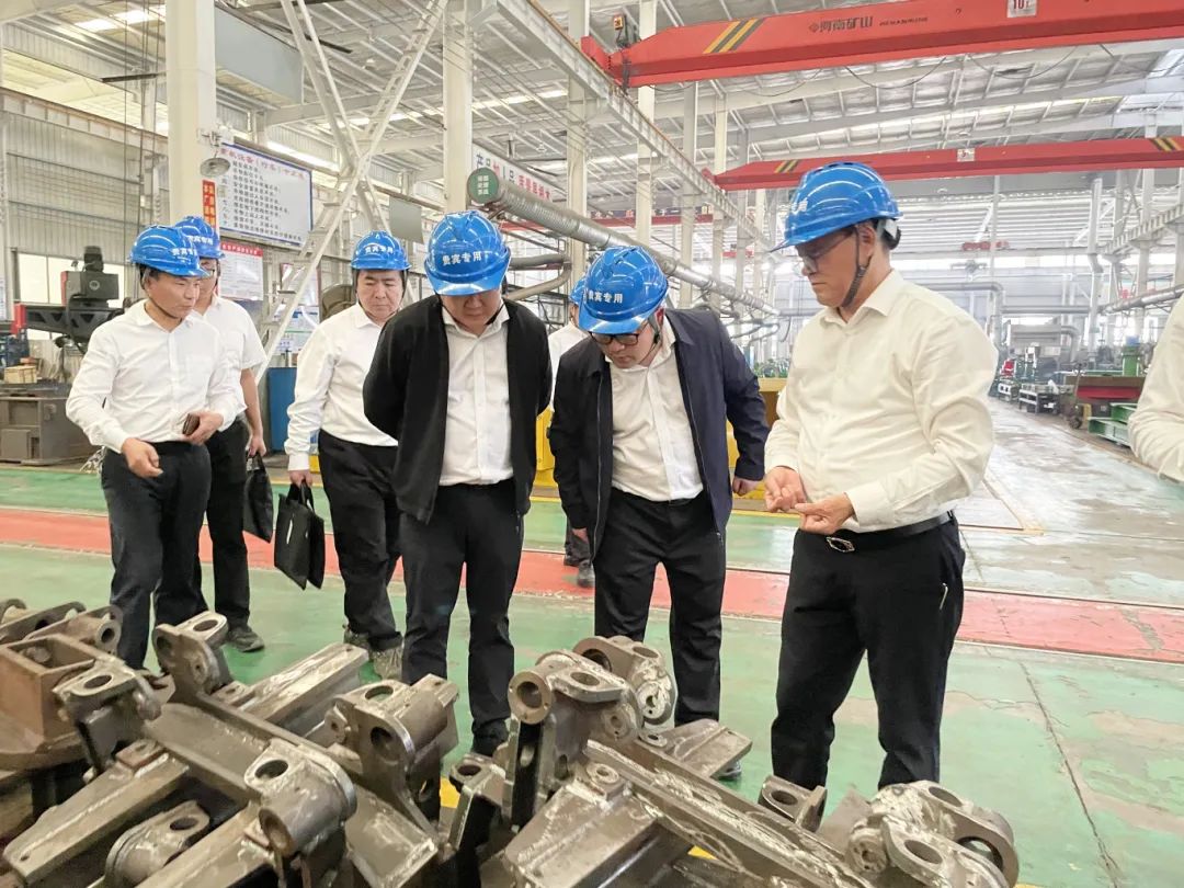 在肖董事長的陪同下,孟院長一行先后參觀了企業(yè)榮譽展廳、單軌吊試驗線、礦山裝備工業(yè)互聯(lián)網(wǎng)智能管控平臺及技術(shù)中心等區(qū)域,并深入生產(chǎn)車間,通過參觀數(shù)控下料車間、機器人智能焊接車間、五軸數(shù)控鏜銑加工中心、智能數(shù)控自動生產(chǎn)線等區(qū)域。孟院長一行詳細了解了單軌吊的制造工藝流程,并對【恒欣股份】單軌吊的自制化程度給予高度評價。在單軌吊裝配區(qū)肖董事長通過對標同行企業(yè),重點介紹了【恒欣股份】單軌吊在安全指標和性能方面的優(yōu)勢。