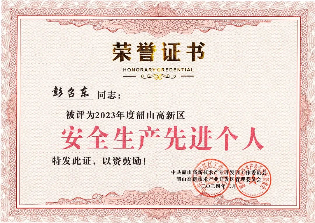 在會(huì)上的表彰環(huán)節(jié),【恒欣股份】分別被授予韶山市2023年度安全生產(chǎn)和消防工作優(yōu)秀企業(yè)和高新區(qū)2023年度“畝產(chǎn)論英雄”先進(jìn)企業(yè),安全管理員彭召東和技術(shù)工程師范永鑫分別榮獲高新區(qū)安全生產(chǎn)先進(jìn)個(gè)人和科技創(chuàng)新先進(jìn)個(gè)人。