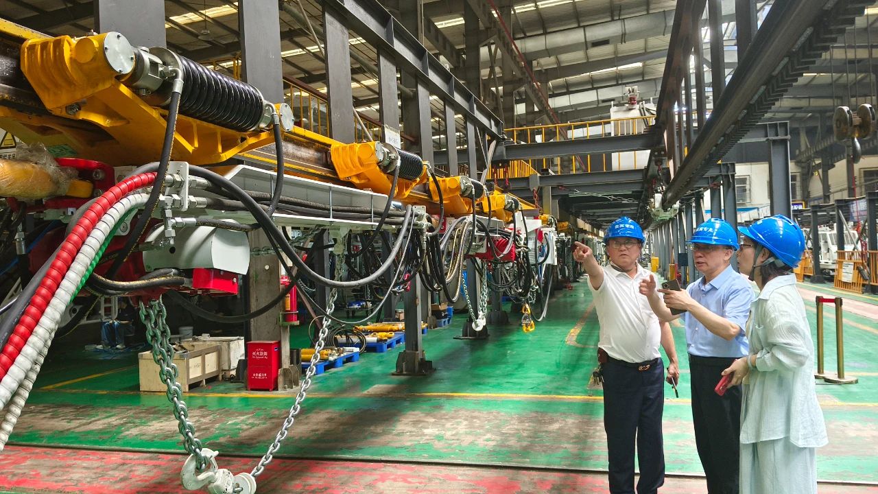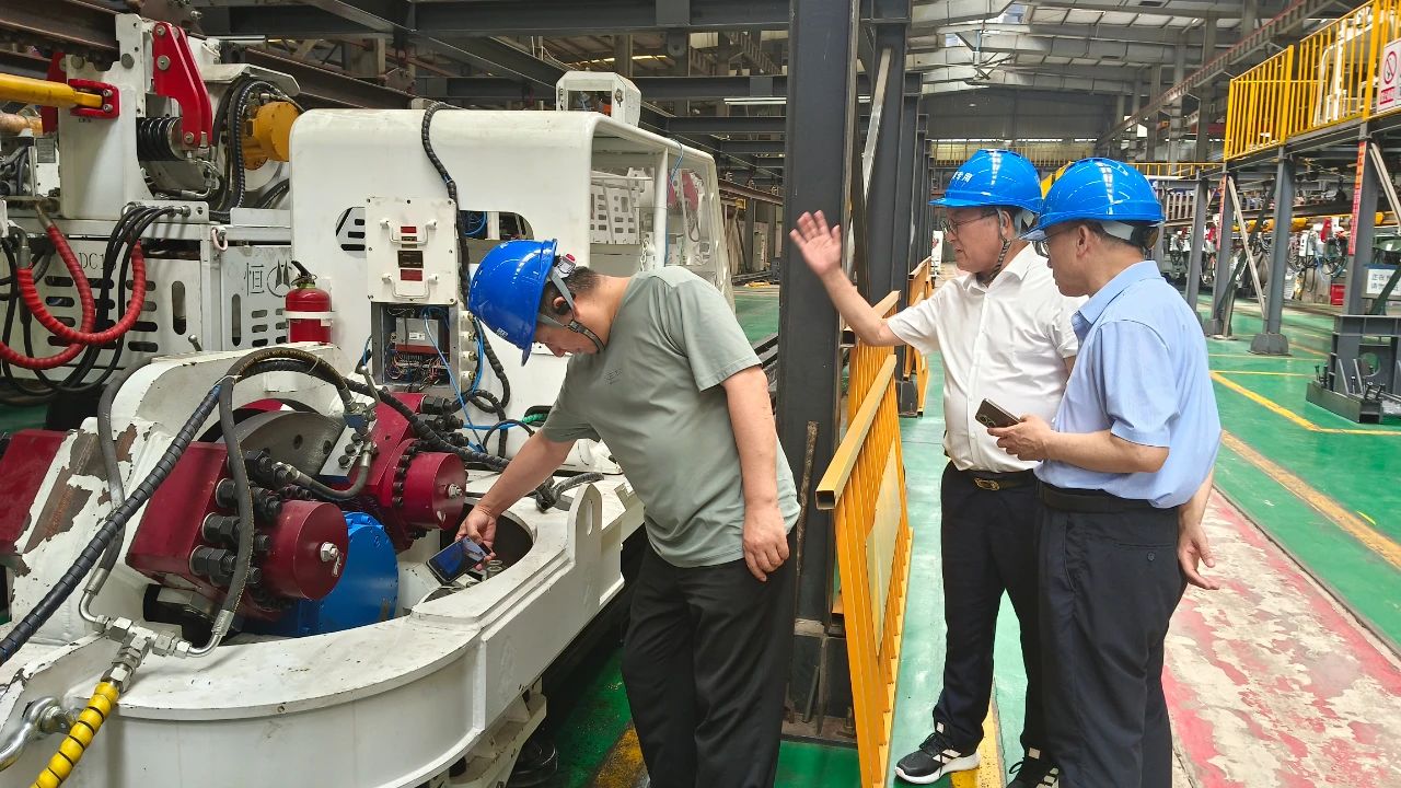 在肖董事長陪同下,??傄恍袑?shí)地考察了企業(yè)榮譽(yù)展廳、數(shù)控自動生產(chǎn)線、機(jī)器人焊接車間、下料車間、單軌吊無人駕駛試驗區(qū)及物聯(lián)網(wǎng)管控平臺等重點(diǎn)區(qū)域。參觀期間,肖董事長詳細(xì)介紹了公司發(fā)展歷程、技術(shù)創(chuàng)新成果與產(chǎn)品市場前景,并重點(diǎn)展示了單軌吊無人駕駛技術(shù)的核心優(yōu)勢及其在礦山領(lǐng)域的應(yīng)用成效,通過實(shí)時監(jiān)控與現(xiàn)場演示,??傄恍猩钊肓私饬嗽O(shè)備的智能化控制技術(shù)和運(yùn)行狀態(tài)。肖董事長還結(jié)合井下典型案例,進(jìn)一步闡釋了智能裝備設(shè)備技術(shù)對提升礦山運(yùn)輸效率與安全性的顯著作用。