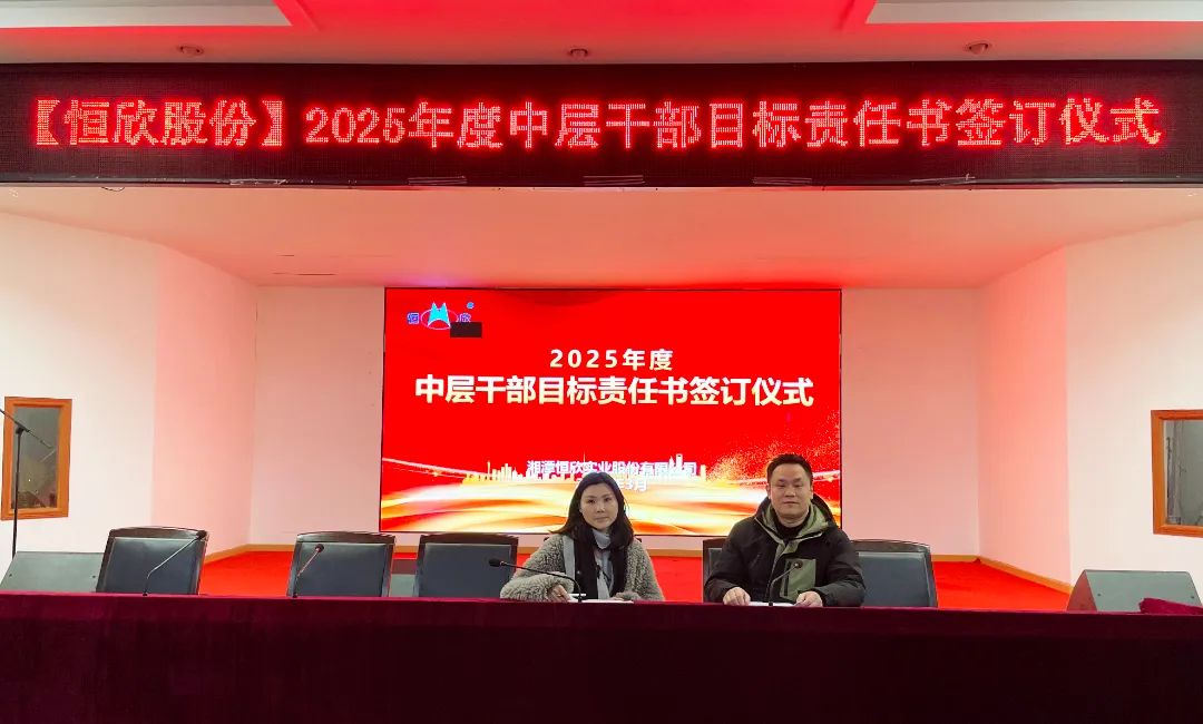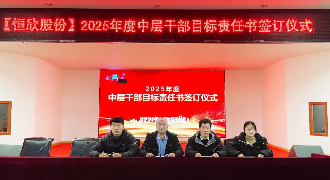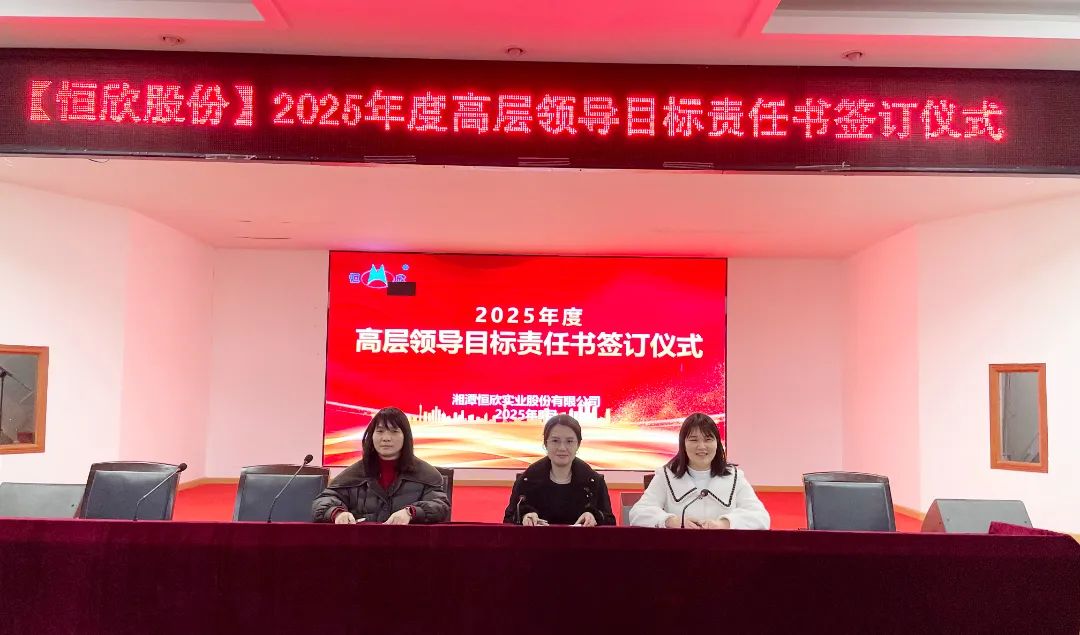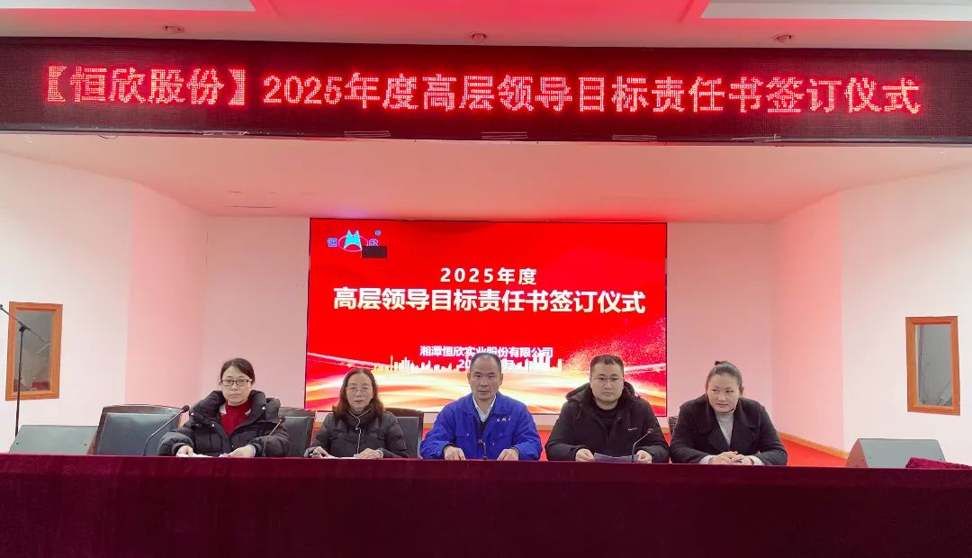 2025年3月14日,湘潭恒欣實業(yè)股份有限公司在三樓大會議室舉行中高層管理人員年度目標(biāo)責(zé)任書簽訂儀式。公司延續(xù)層級管理模式,全體中高層干部莊嚴簽署責(zé)任書,以“軍令狀”凝聚共識,以“承諾書”扛起使命。