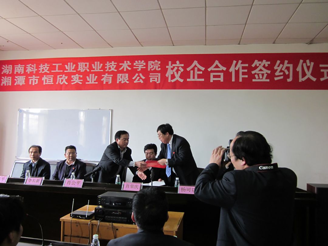 2011年3月31日,在韶山市領(lǐng)導(dǎo)的見(jiàn)證下,我公司與湖南科技工業(yè)職業(yè)技術(shù)學(xué)院簽訂了校企合作協(xié)議書,校方為我公司人才培養(yǎng)基地,為我公司培養(yǎng)所需求的人才;我公司在校方設(shè)立“恒欣”班,并為其提供獎(jiǎng)學(xué)金和愛(ài)心基金。