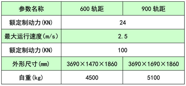 卡軌制動尾車具有在普通軌道卡軌運行、實現(xiàn)安全制動、活動鎖緊鋼絲繩等功能,可以有效的保持各車輛之間的相對位置不變,避免前后車輛相互碰撞。