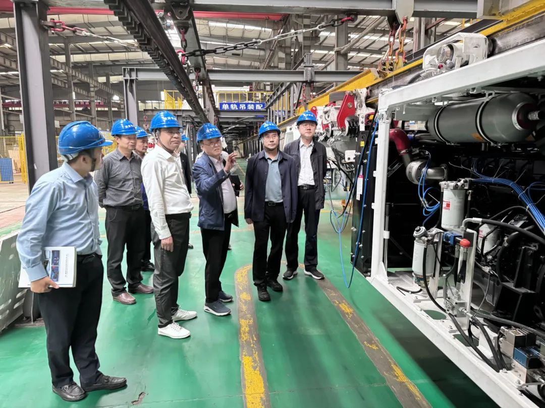 座談會上,肖董事長向梁副市長一行介紹了企業(yè)基本情況、技術(shù)創(chuàng)新能力、產(chǎn)品市場前景、發(fā)展規(guī)劃等情況。梁副市長對【恒欣股份】二十多年來深耕礦山軌道運輸智能裝備給予了高度肯定。隨后,在肖董事長的陪同下,梁副市長一行先后參觀了企業(yè)榮譽展廳、數(shù)控下料車間、數(shù)控自動生產(chǎn)線、礦用單軌吊試驗線等區(qū)域。在參觀礦用單軌吊試驗區(qū)時,肖董事長向梁副市長一行詳細介紹了礦用單軌吊的產(chǎn)品類型、AI視頻、無人駕駛等技術(shù)優(yōu)勢,并重點講解了【恒欣股份】單軌吊優(yōu)于同行業(yè)產(chǎn)品的安全指標(biāo)和性能。