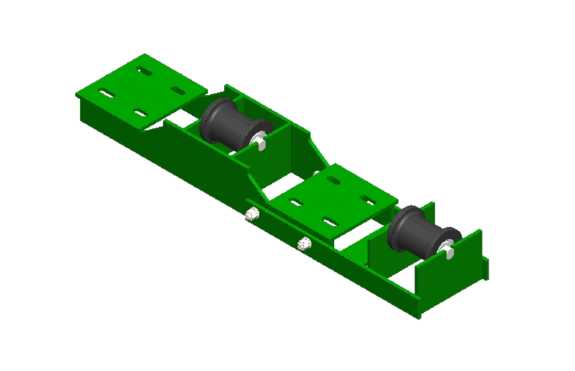 為適應(yīng)起伏變化的巷道,避免鋼絲繩摩擦巷道底板,在線路中的平巷或上變坡點(diǎn)安裝托繩輪組,起到減小磨損,延長鋼絲繩使用壽命的目的。根據(jù)鋼絲繩在軌道的布置方式分為雙繩托繩輪組和單繩托繩輪組兩種。